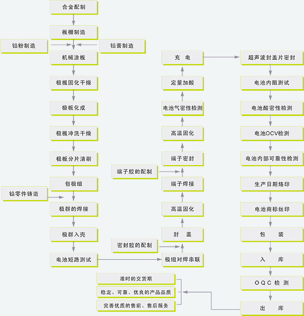 為了確保電池的領(lǐng)先品質(zhì),一電采用世界上先進的生產(chǎn)設(shè)備和不斷更新的技術(shù)工藝組織生產(chǎn)。品質(zhì)部設(shè)有IQC、IPQC、QA、QE、OQC、化驗室、測試室等等七大部門,從